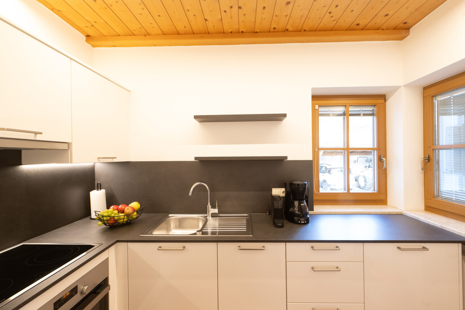 Das großzügige Apartment verfügt über: Ein Schlafzimmer mit Doppelbett, ein Wohnraum mit Schlafmöflichkeit und Sat TV, eine Küche ausgestattet mit Keramikherdplatten, einem Kühlschrank mit Gefrierfach, Geschirr, Besteck und Kochutensilien, Filter-Kaffemaschine und eine Kaffeekapselmaschine, Wasserkocher, Toaster, Geschirrspülmaschine und Backofen. Weiteres steht Ihnen ein Badezimmer mit Dusche, WC und Haarföhn zur Verfügung.